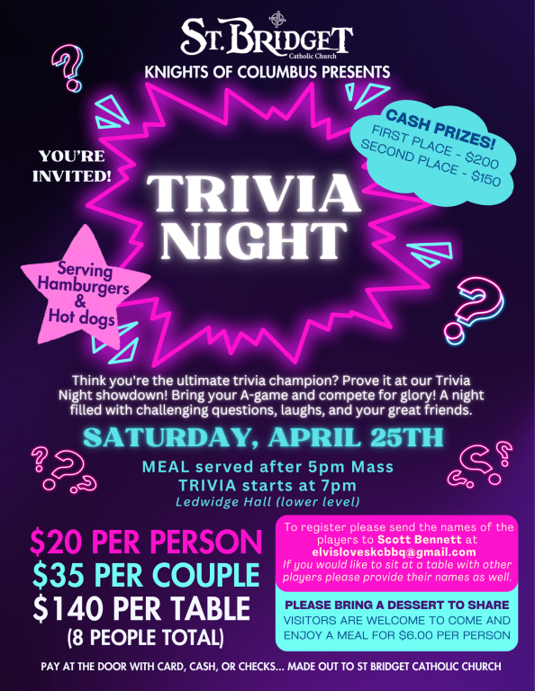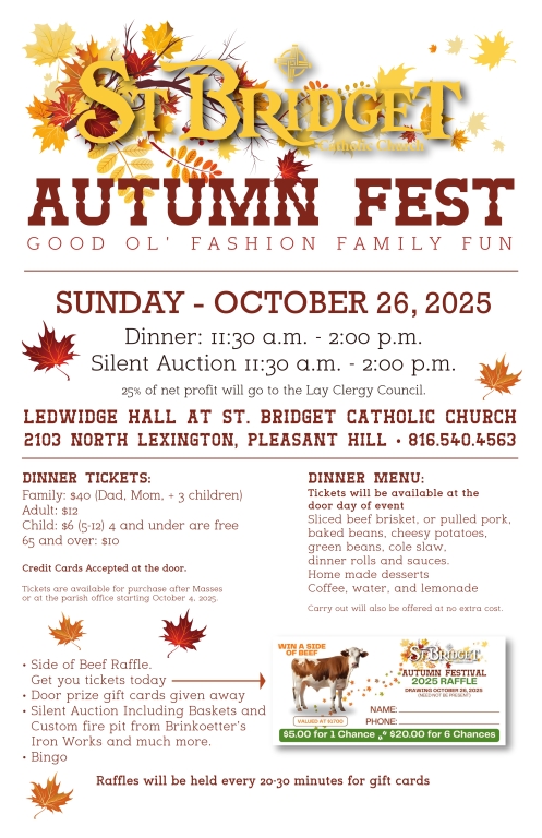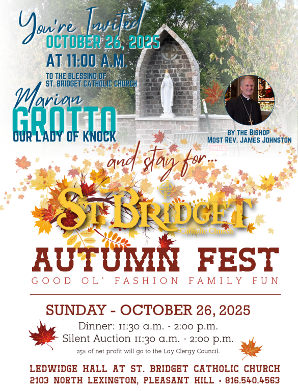 St. Bridget Catholic Church | 2103 Lexington Road | Pleasant Hill, MO 64080 | (816) 540-4563 |